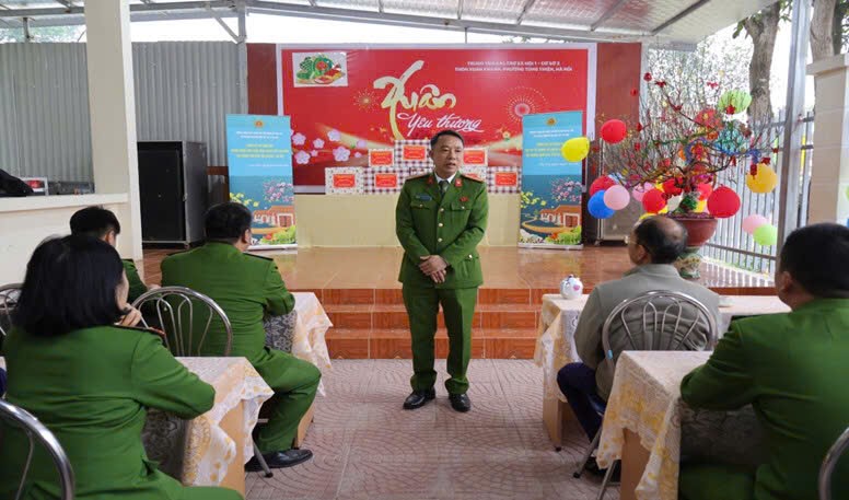Ảnh: Đồng chí Thượng tá Chu Anh Tuấn – Phó Trưởng phòng Cảnh sát điều tra tội phạm về ma túy (PC04) phát biểu trong buổi thăm hỏi, trao tặng quà Tết.